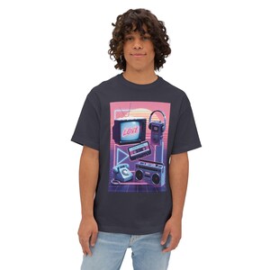 A soft, breathable tee that takes you back to late-night arcade glow and dial-up days. The vintage-retro graphic — neon sunset, chunky CRT monitor, cassette player and telephone — reads like a snapshot from 198X, stirring up fuzzy, smile-first memories. Wear it over jeans for a casual hangout or layered under a jacket on cool evenings; it moves with you, holds its shape, and feels like something you’ve owned for years. Light to the touch but sturdy in the seams, this shirt invites relaxed shoulders and easy conversation about mixtapes, pixel art, and that one unbeatable high score.