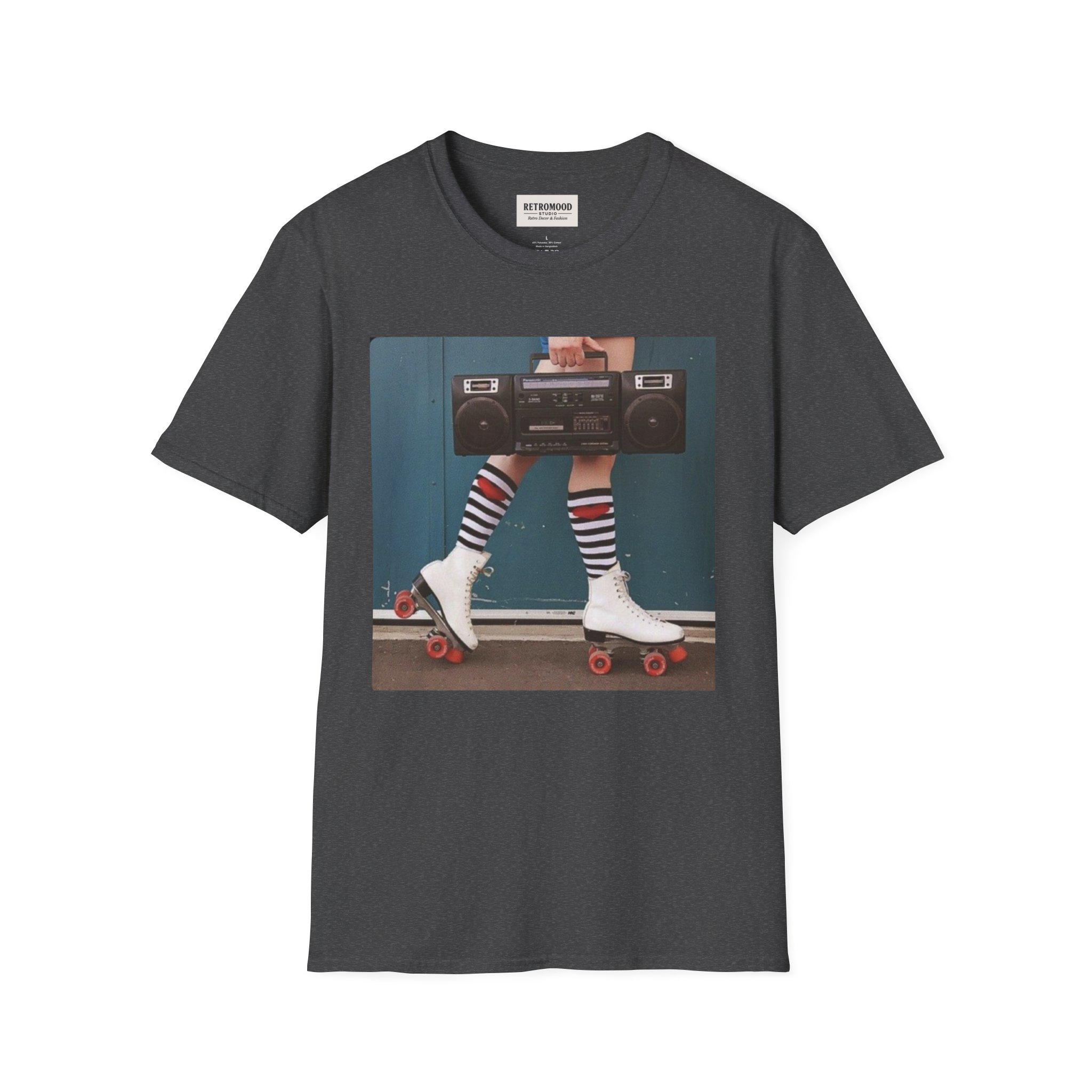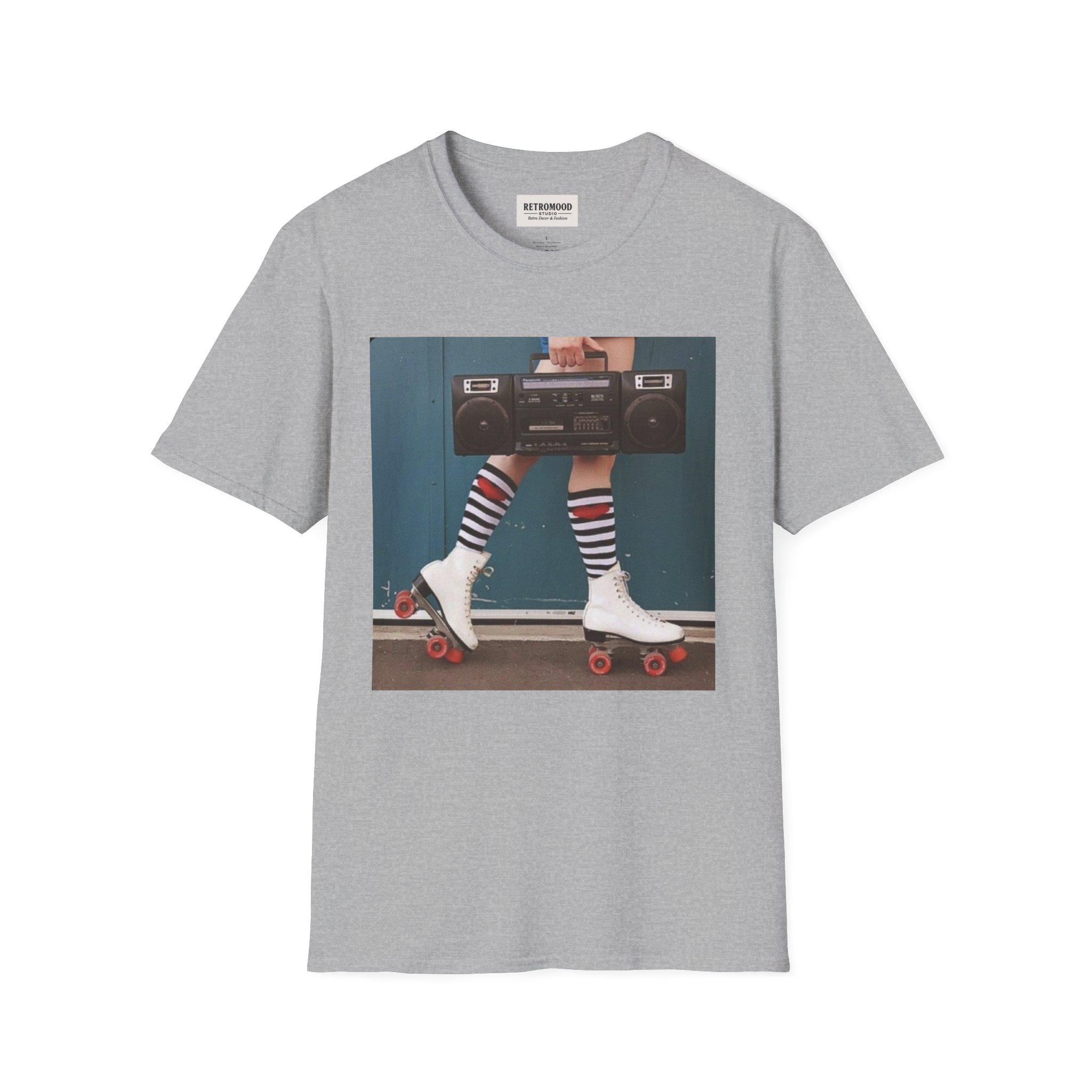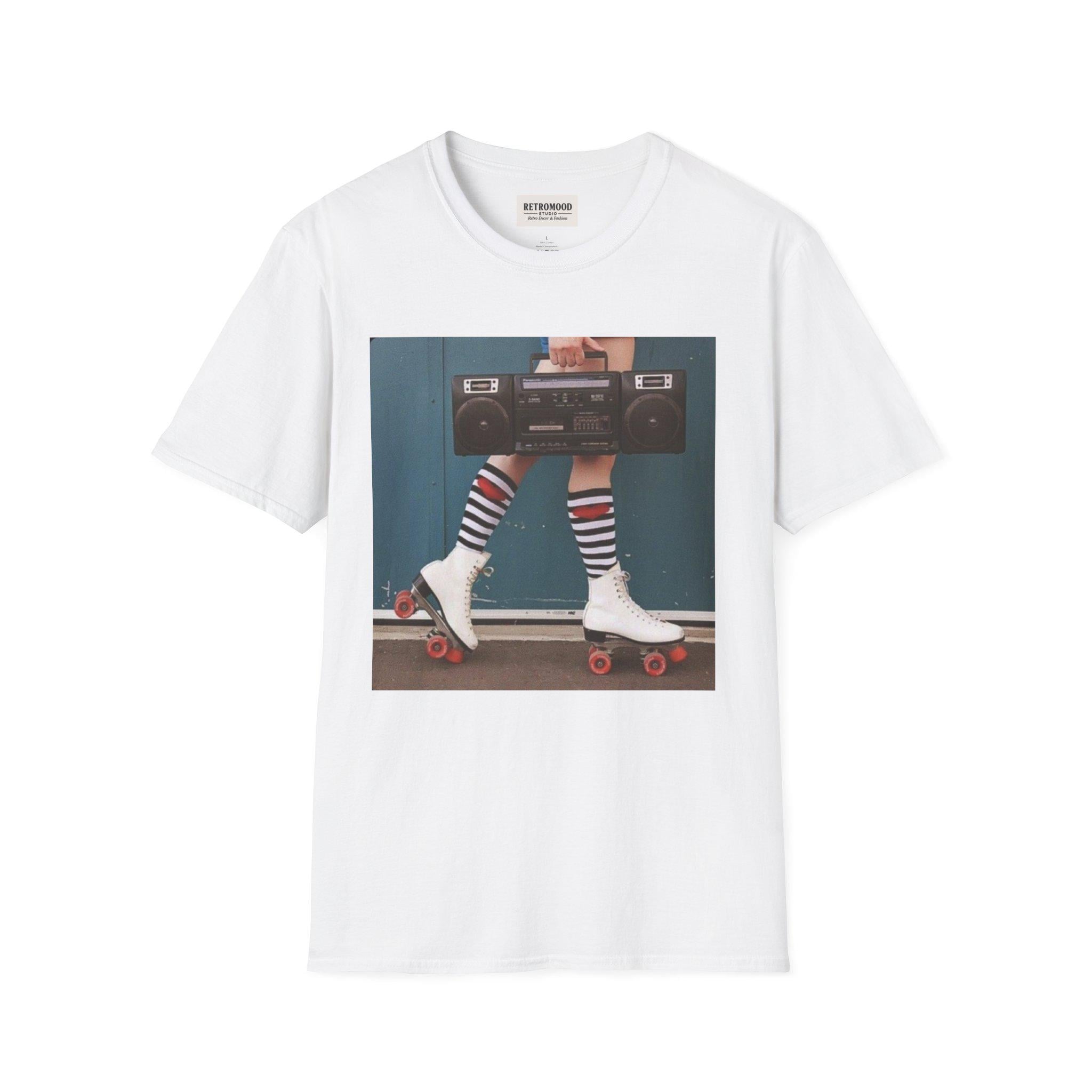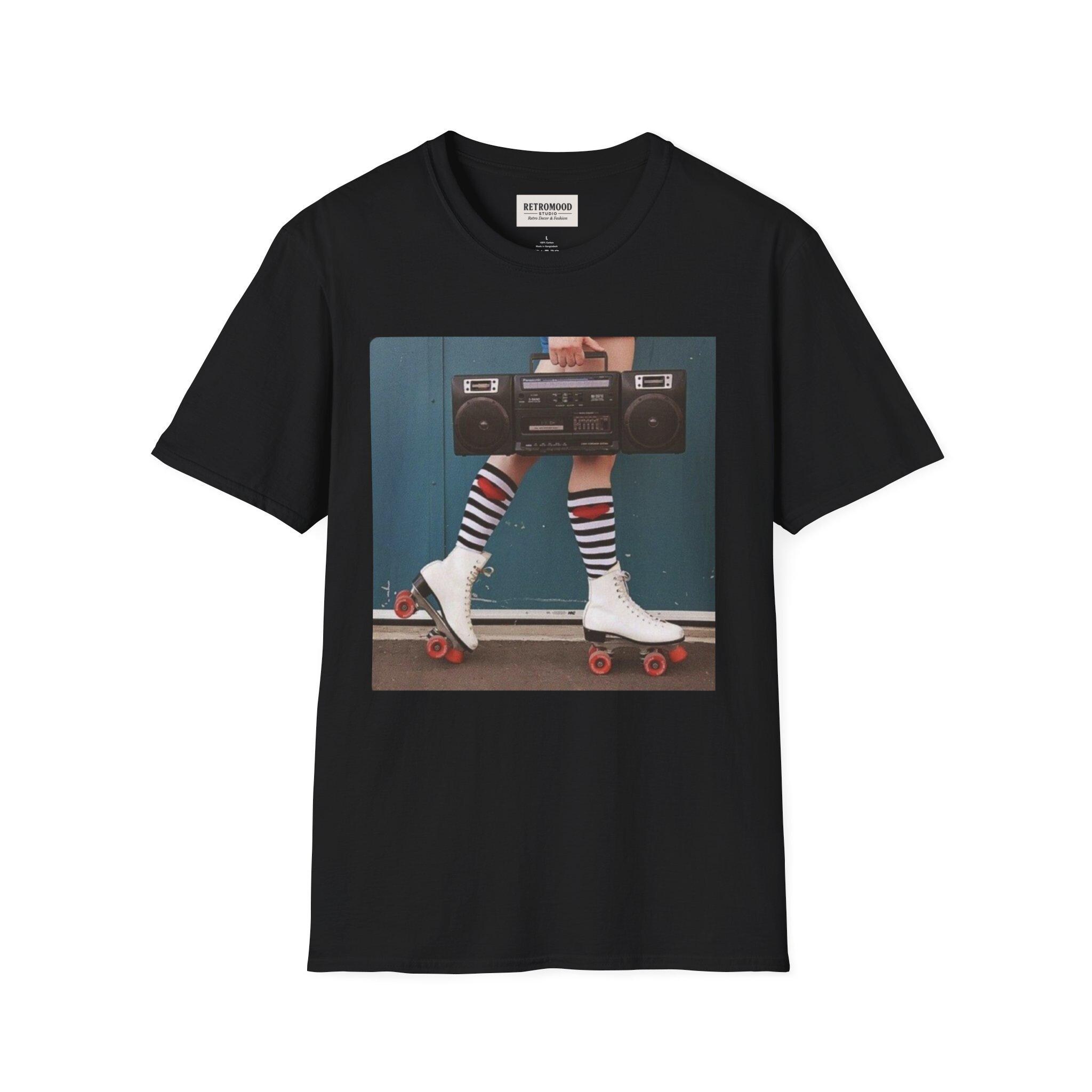 Retro Roller Skates graphic T-Shirt | Boombox, Striped Socks, 80s Vibe
