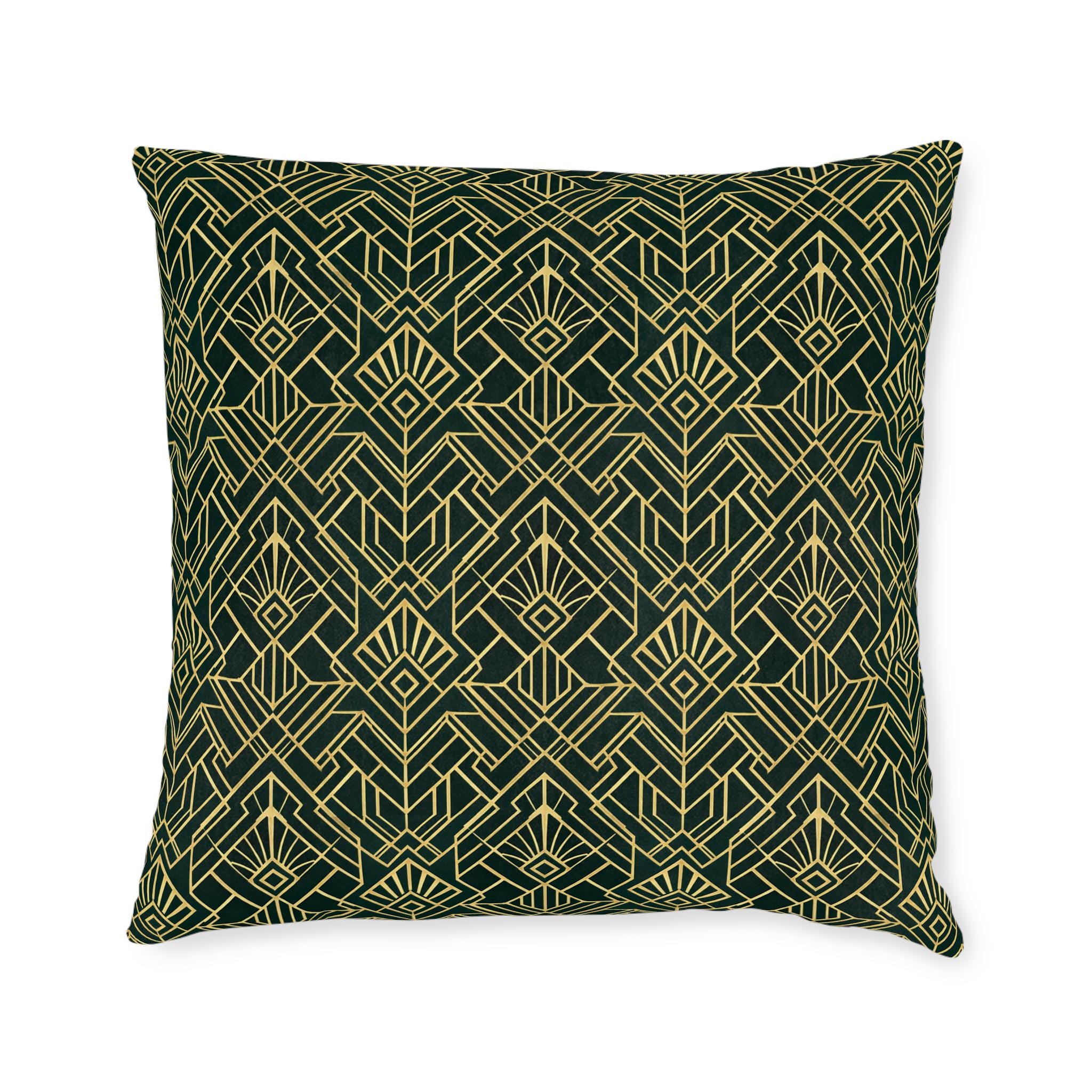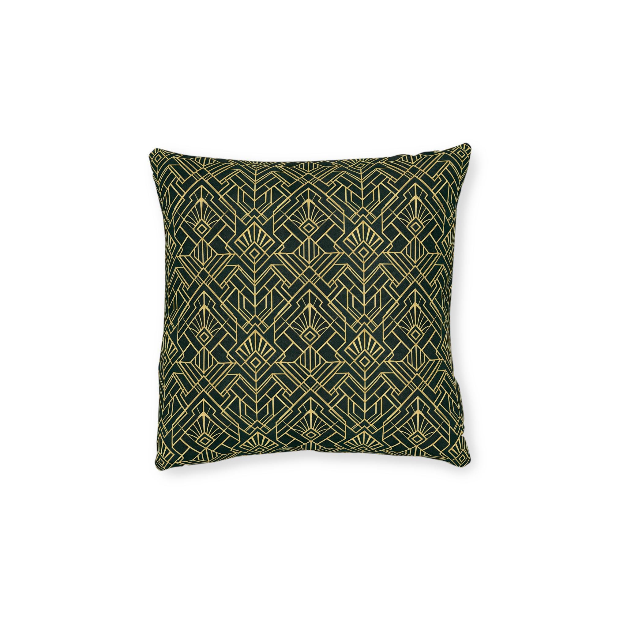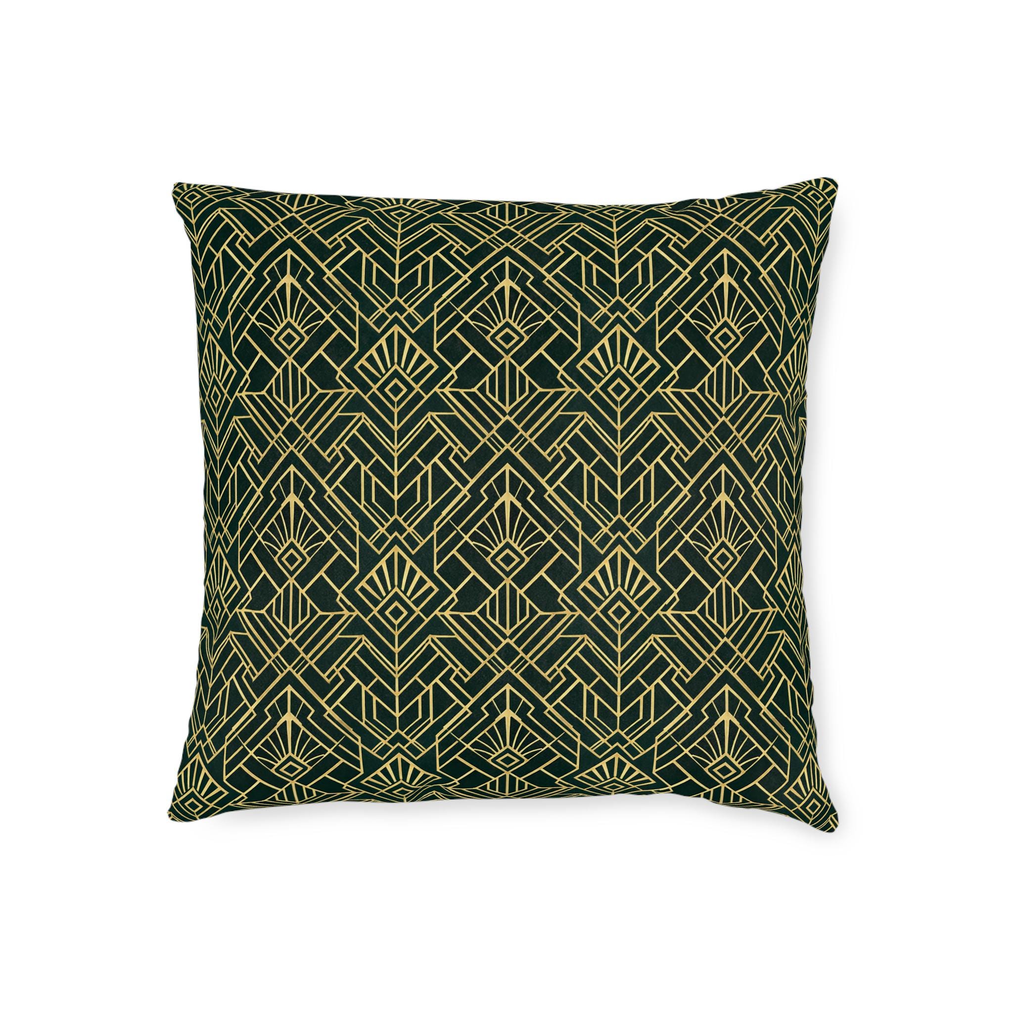 Art Deco 1920s Style Square Pillow | Green Gold Throw Cushion