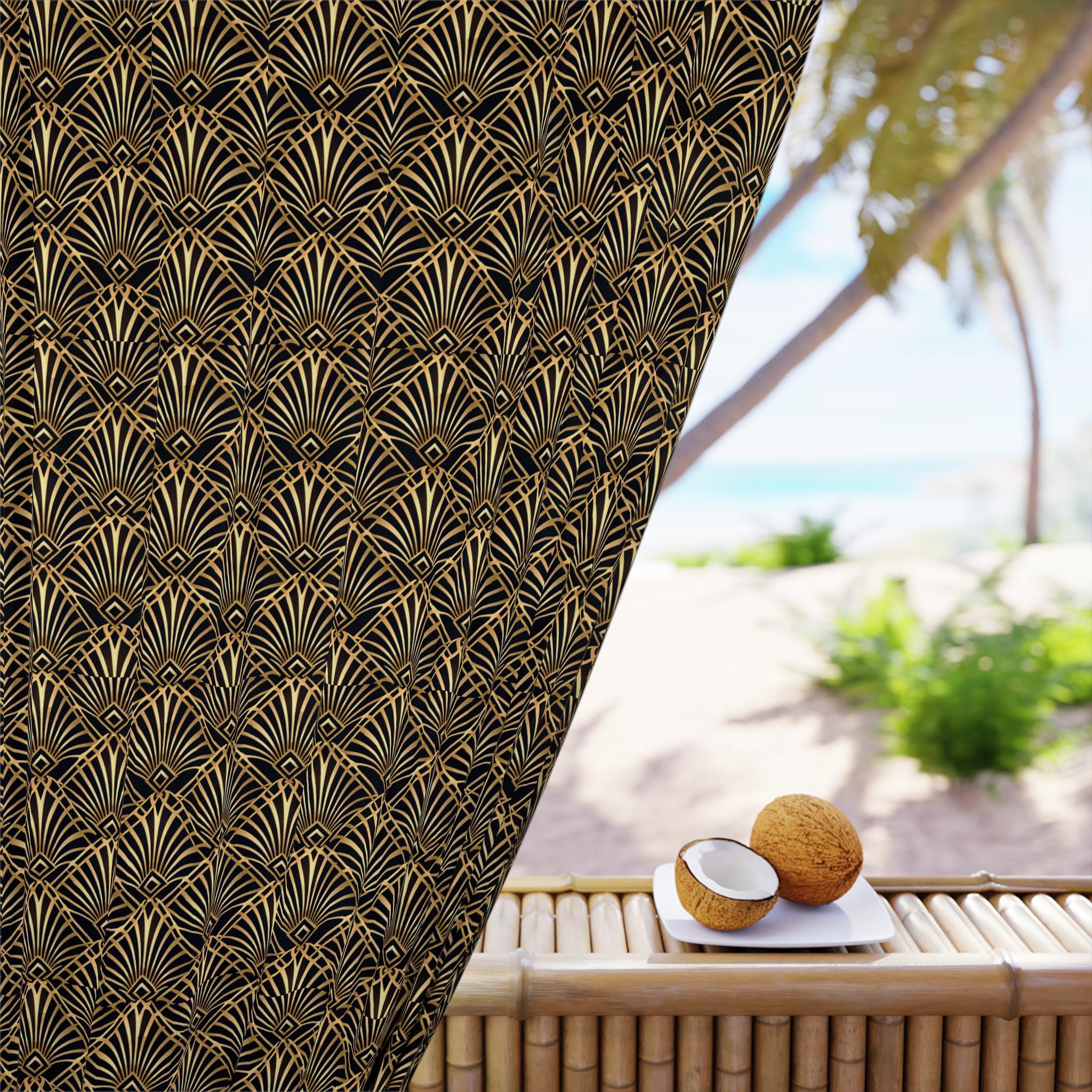 Art Deco Fan Style Curtain | Vintage Gold Brown Drapery