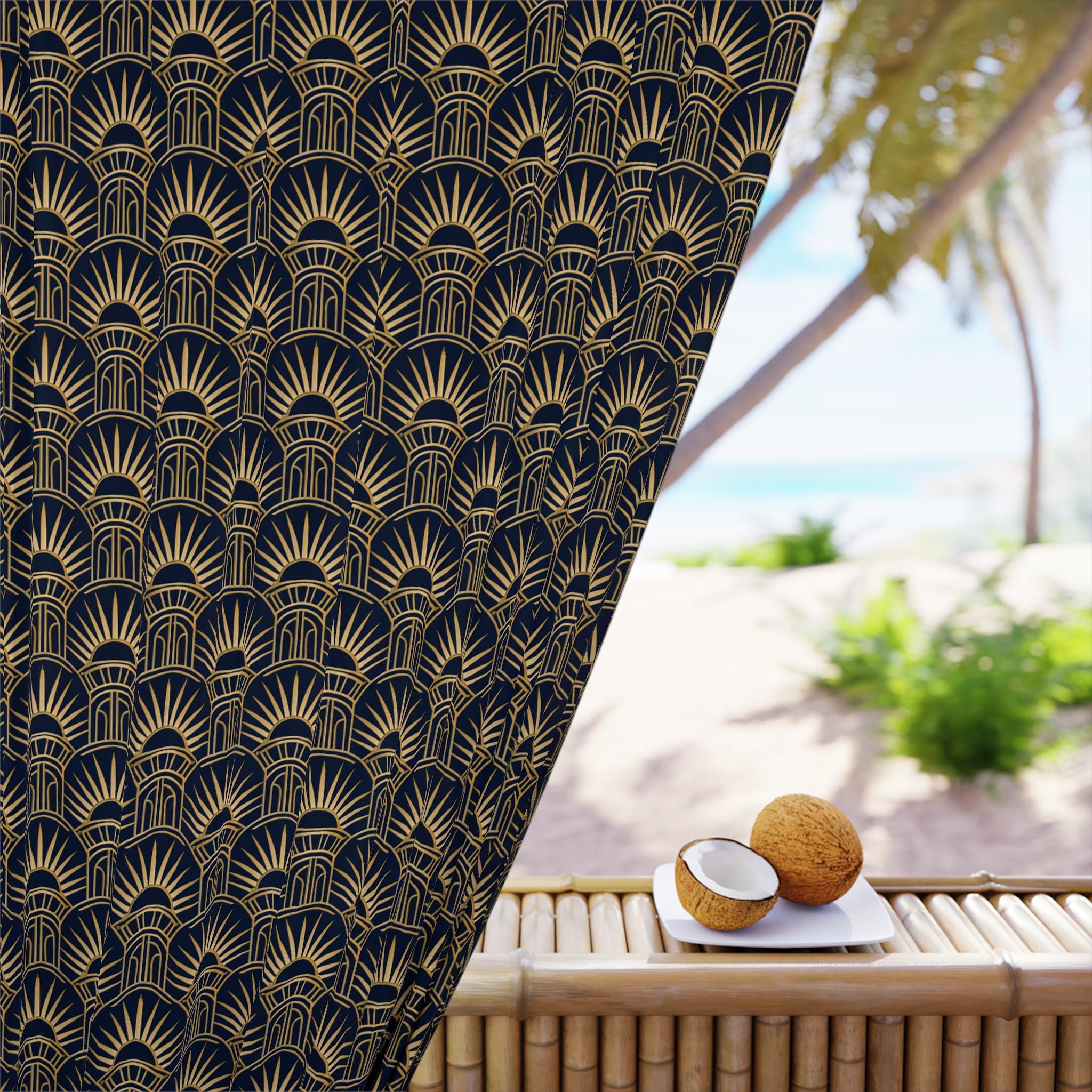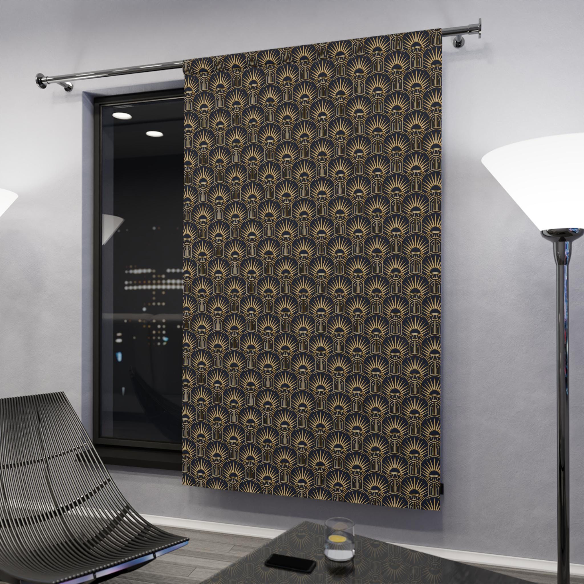 Art Deco Style Curtains | Geometric Black Gold Drapery